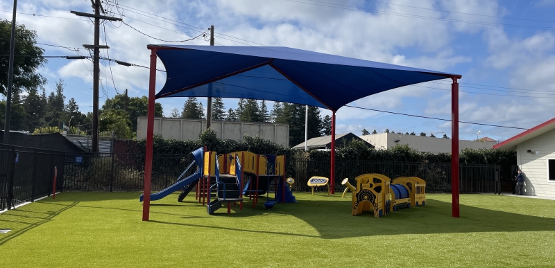 Every corner of our school is thoughtfully designed with students in mind, ensuring a safe and enriching place where your child can learn and grow. Nestled in a beautiful tree-lined neighborhood, our campus offers hands-on learning combined with plenty of play, allowing children to make connections between abstract concepts and real-world experiences. We also bring the learning outdoors, providing opportunities for our students to explore our new playground with brand-new state-of-the-art play equipment, a shade structure, and padded playground turf.